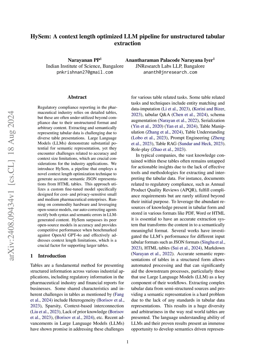 HySem: A context length optimized LLM pipeline for unstructured tabular