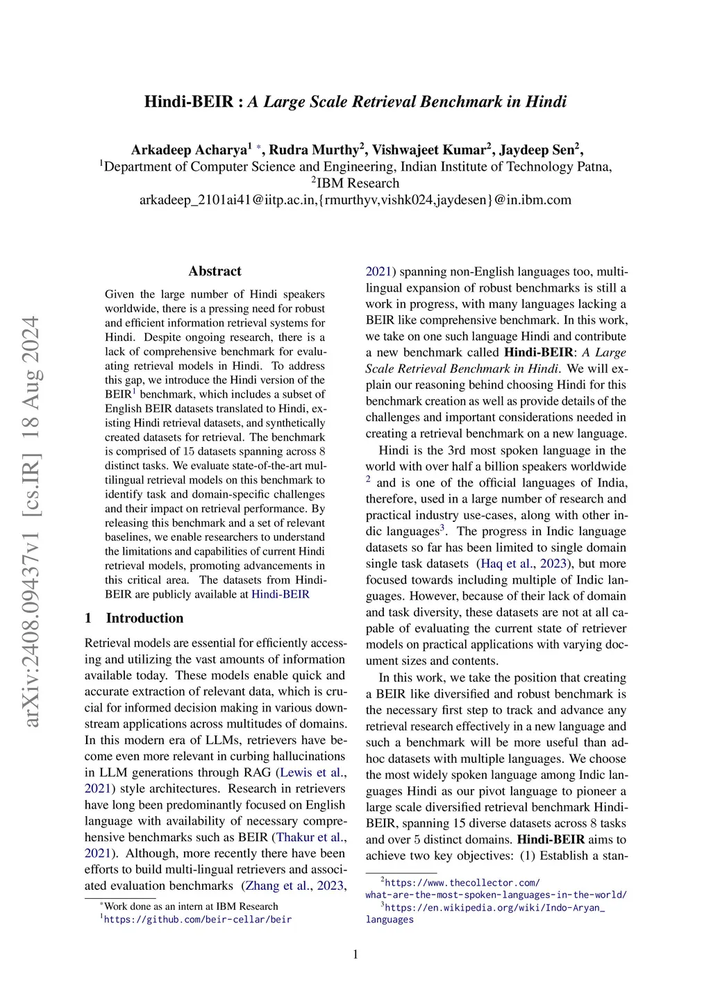 Hindi-BEIR : A Large Scale Retrieval Benchmark in Hindi