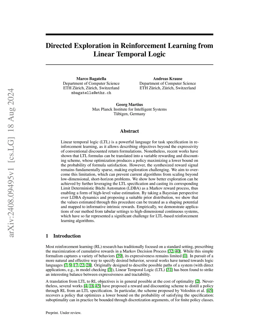 Directed Exploration in Reinforcement Learning from Linear Temporal Logic