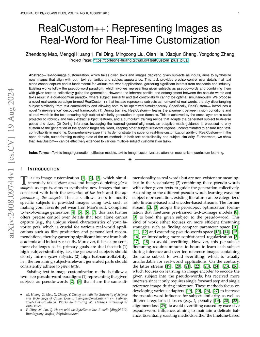 Given a text and an image of a specific subject, text-to-image customization aims to generate new images that align with both the text and the subject's appearance. Existing works follow the pseudo-word paradigm, which represents the subject as a non-existent pseudo word and combines it with other text to generate images. However, the pseudo word causes semantic conflict from its different learning objective and entanglement from overlapping influence scopes with other texts, resulting in a dual-optimum paradox where subject similarity and text controllability cannot be optimal simultaneously. To address this, we propose RealCustom++, a novel real-word paradigm that represents the subject with a non-conflicting real word to firstly generate a coherent guidance image and corresponding subject mask, thereby disentangling the influence scopes of the text and subject for simultaneous optimization. Specifically, RealCustom++ introduces a train-inference decoupled framework: (1) during training, it learns a general alignment between visual conditions and all real words in the text; and (2) during inference, a dual-branch architecture is employed, where the Guidance Branch produces the subject guidance mask and the Generation Branch utilizes this mask to customize the generation of the specific real word exclusively within subject-relevant regions. In contrast to previous methods that excel in either controllability or similarity, RealCustom++ achieves superior performance in both, with improvements of 7.48% in controllability, 3.04% in similarity, and 76.43% in generation quality. For multi-subject customization, RealCustom++ further achieves improvements of 4.6% in controllability and 6.34% in multi-subject similarity. Our work has been applied in JiMeng of ByteDance, and codes are released atthis https URL.