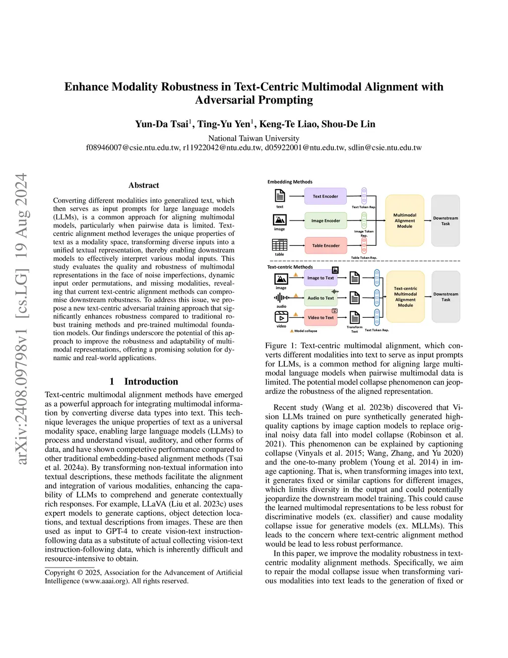 Enhance Modality Robustness in Text-Centric Multimodal Alignment with