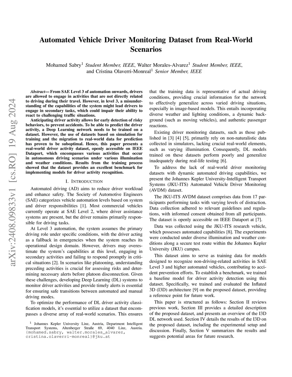 Automated Vehicle Driver Monitoring Dataset from Real-World Scenarios