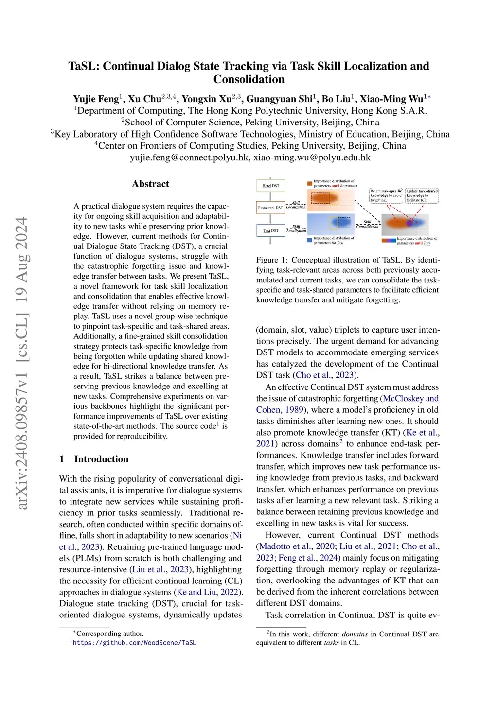 TaSL: Continual Dialog State Tracking via Task Skill Localization and
