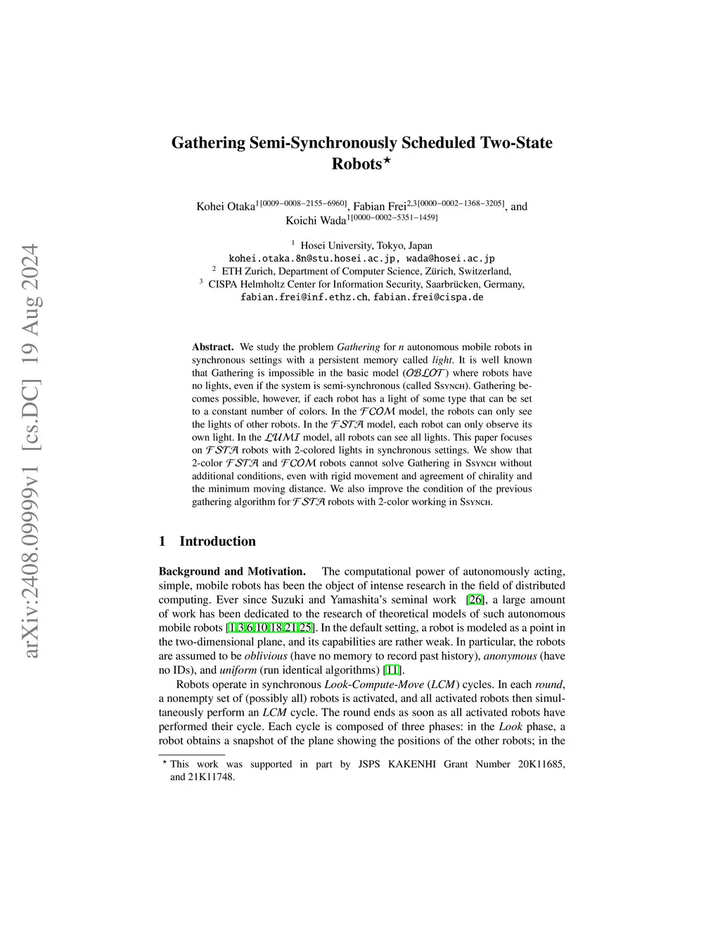 Gathering Semi-Synchronously Scheduled Two-State Robots