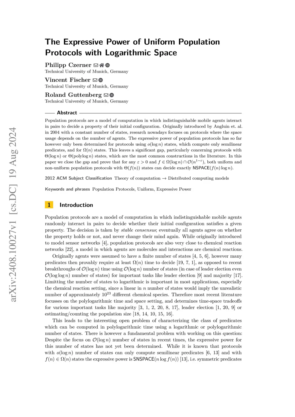 The Expressive Power of Uniform Population Protocols with Logarithmic