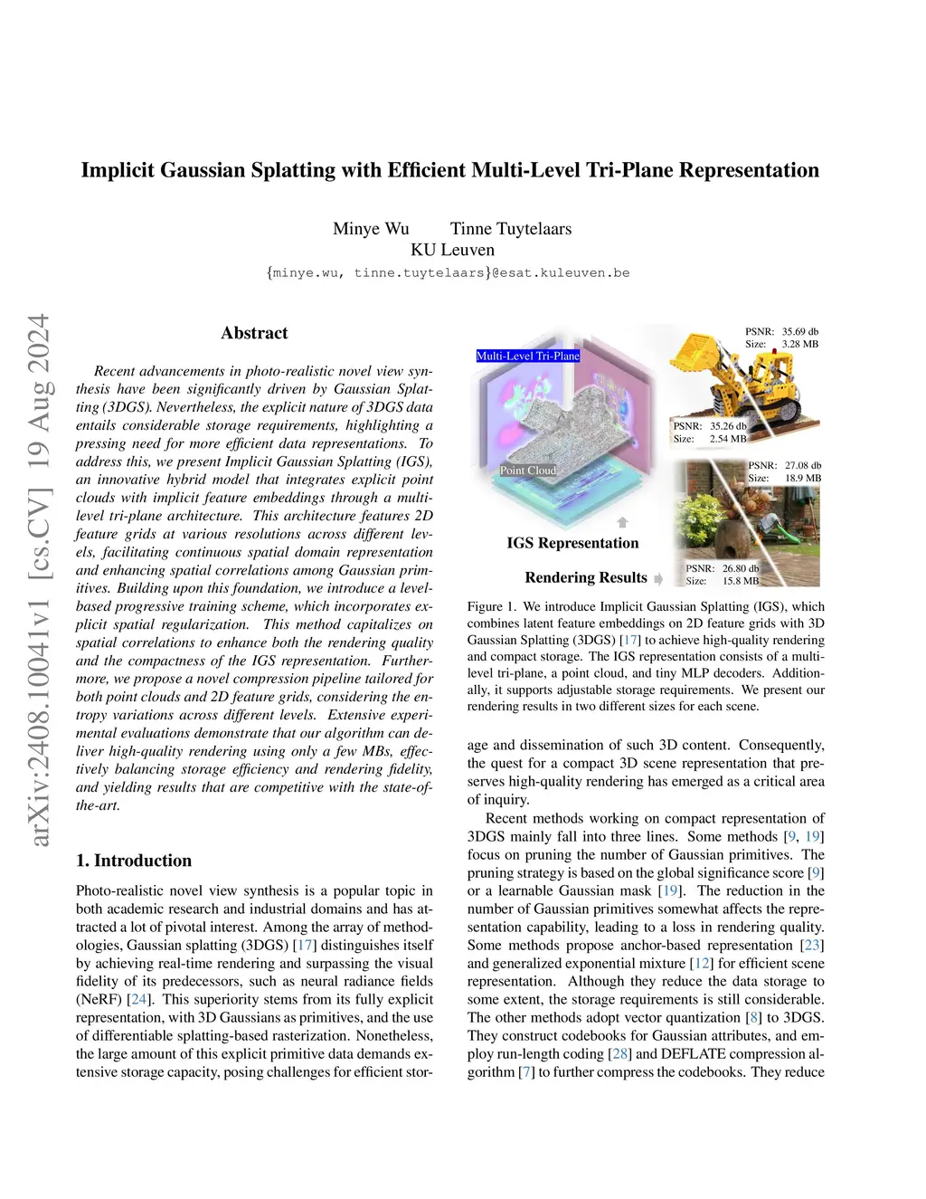Implicit Gaussian Splatting with Efficient Multi-Level Tri-Plane