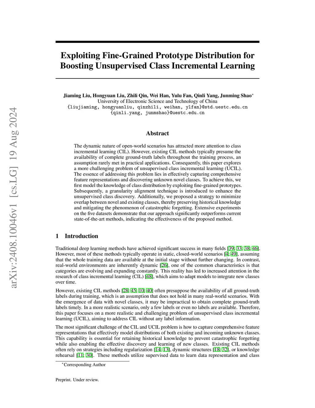 The dynamic nature of open-world scenarios has attracted more attention to class incremental learning (CIL). However, existing CIL methods typically presume the availability of complete ground-truth labels throughout the training process, an assumption rarely met in practical applications. Consequently, this paper explores a more challenging problem of unsupervised class incremental learning (UCIL). The essence of addressing this problem lies in effectively capturing comprehensive feature representations and discovering unknown novel classes. To achieve this, we first model the knowledge of class distribution by exploiting fine-grained prototypes. Subsequently, a granularity alignment technique is introduced to enhance the unsupervised class discovery. Additionally, we proposed a strategy to minimize overlap between novel and existing classes, thereby preserving historical knowledge and mitigating the phenomenon of catastrophic forgetting. Extensive experiments on the five datasets demonstrate that our approach significantly outperforms current state-of-the-art methods, indicating the effectiveness of the proposed method.