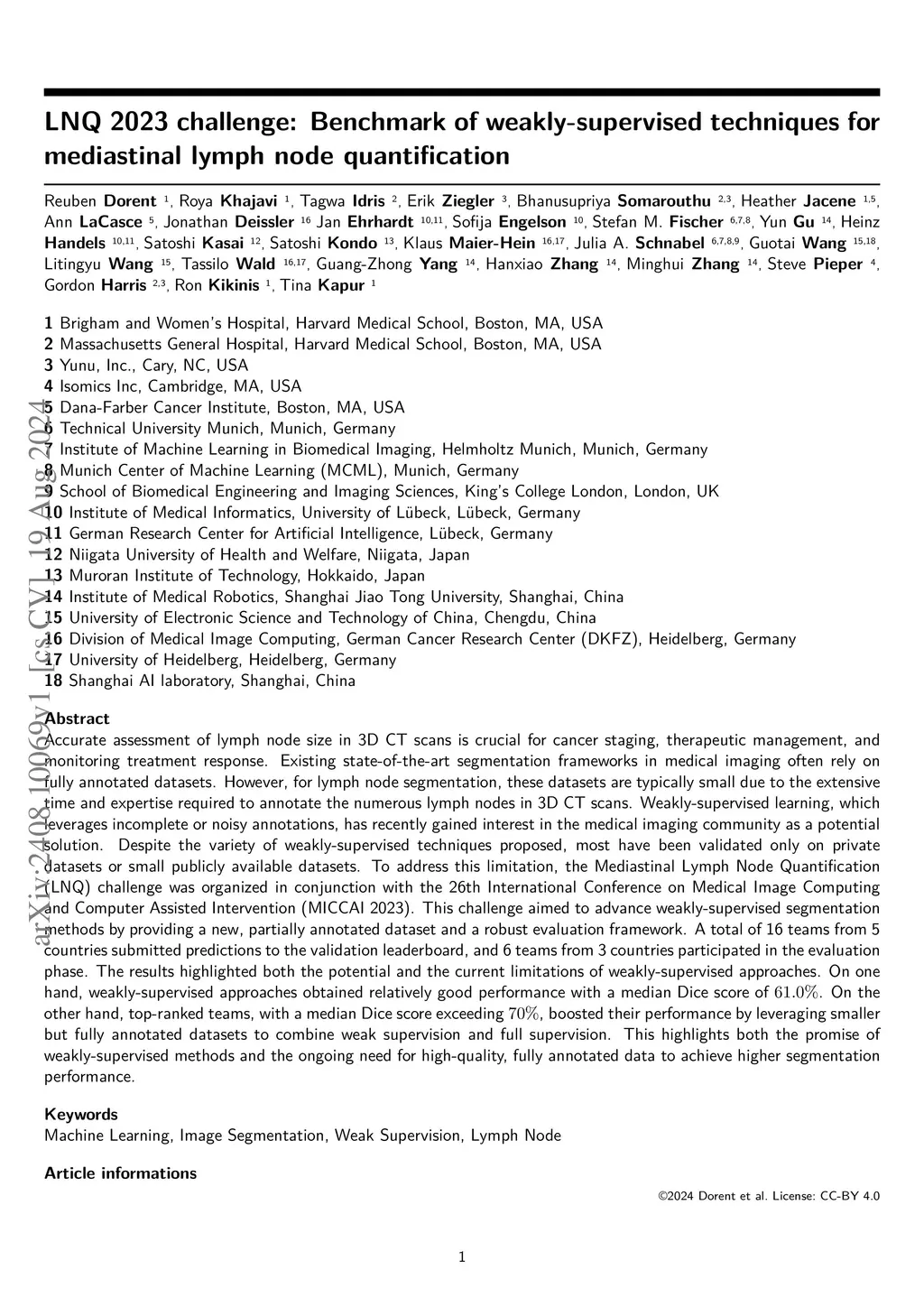 LNQ 2023 challenge: Benchmark of weakly-supervised techniques for mediastinal lymph node quantification