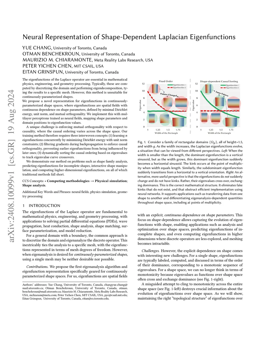 Eigenanalysis of differential operators, such as the Laplace operator or elastic energy Hessian, is typically restricted to a single shape and its discretization, limiting reduced order modeling (ROM). We introduce the first eigenanalysis method for continuously parameterized shape families. Given a parametric shape, our method constructs spatial neural fields that represent eigenfunctions across the entire shape space. It is agnostic to the specific shape representation, requiring only an inside/outside indicator function that depends on shape parameters. Eigenfunctions are computed by minimizing a variational principle over nested spaces with orthogonality constraints. Since eigenvalues may swap dominance at points of multiplicity, we jointly train multiple eigenfunctions while dynamically reordering them based on their eigenvalues at each step. Through causal gradient filtering, this reordering is reflected in backpropagation. Our method enables applications to operate over shape space, providing a single ROM that encapsulates vibration modes for all shapes, including previously unseen ones. Since our eigenanalysis is differentiable with respect to shape parameters, it facilitates eigenfunction-aware shape optimization. We evaluate our approach on shape optimization for sound synthesis and locomotion, as well as reduced-order modeling for elastodynamic simulation.