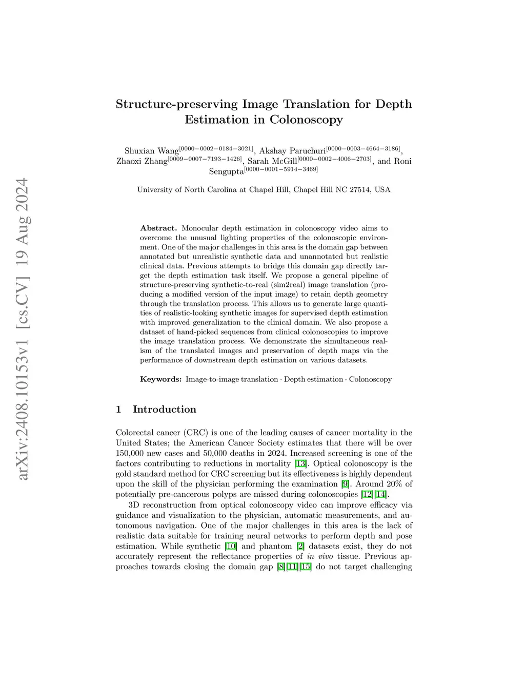 Structure-preserving Image Translation for Depth Estimation in