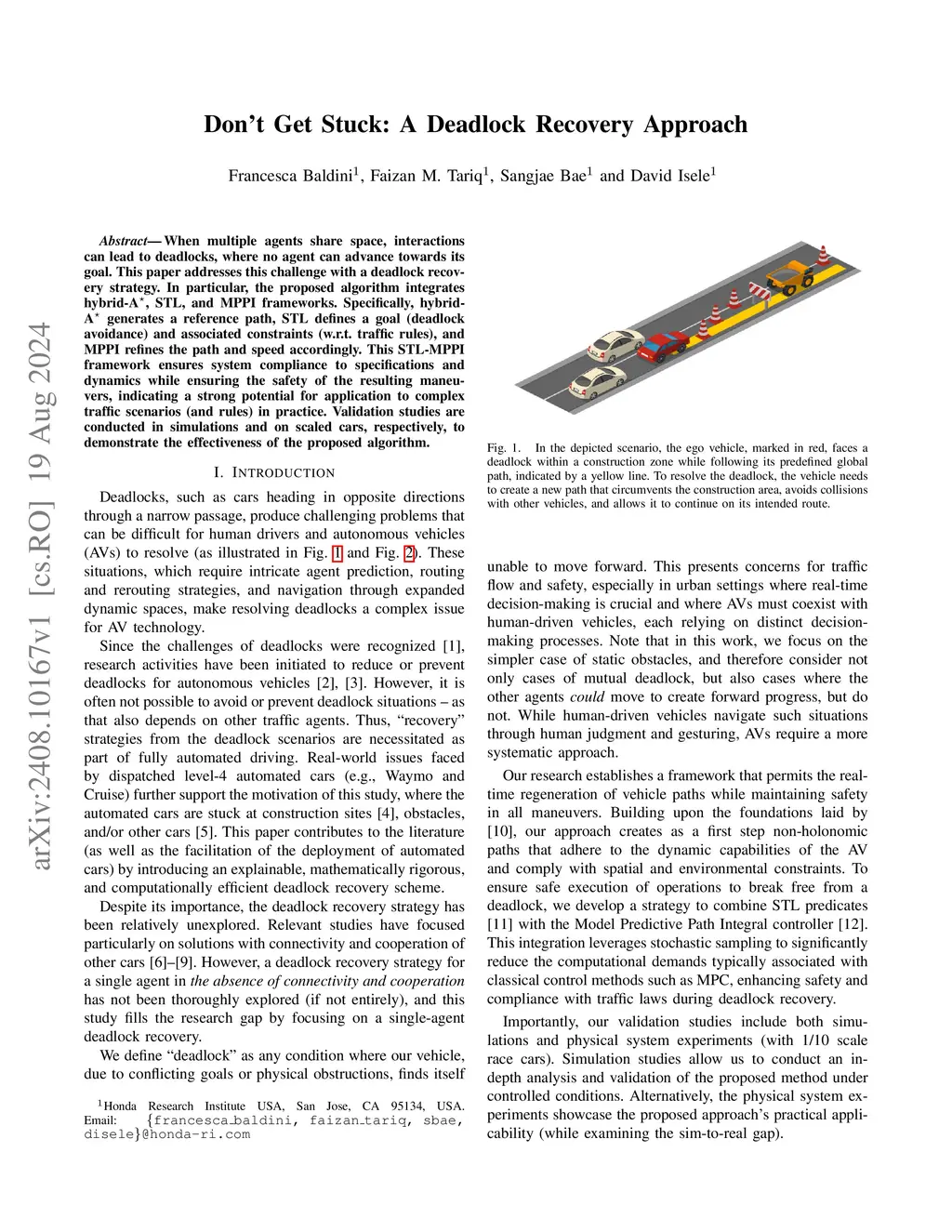 When multiple agents share space, interactions can lead to deadlocks, where no agent can advance towards its goal. This paper addresses this challenge with a deadlock recovery strategy. In particular, the proposed algorithm integrates hybrid-A, STL, and MPPI frameworks. Specifically, hybrid-A generates a reference path, STL defines a goal (deadlock avoidance) and associated constraints (w.r.t. traffic rules), and MPPI refines the path and speed accordingly. This STL-MPPI framework ensures system compliance to specifications and dynamics while ensuring the safety of the resulting maneuvers, indicating a strong potential for application to complex traffic scenarios (and rules) in practice. Validation studies are conducted in simulations and on scaled cars, respectively, to demonstrate the effectiveness of the proposed algorithm.