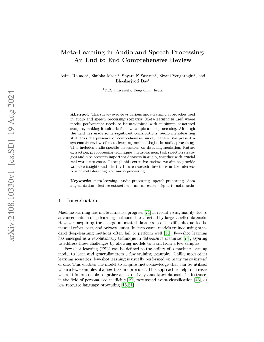 Meta-Learning in Audio and Speech Processing: An End to End