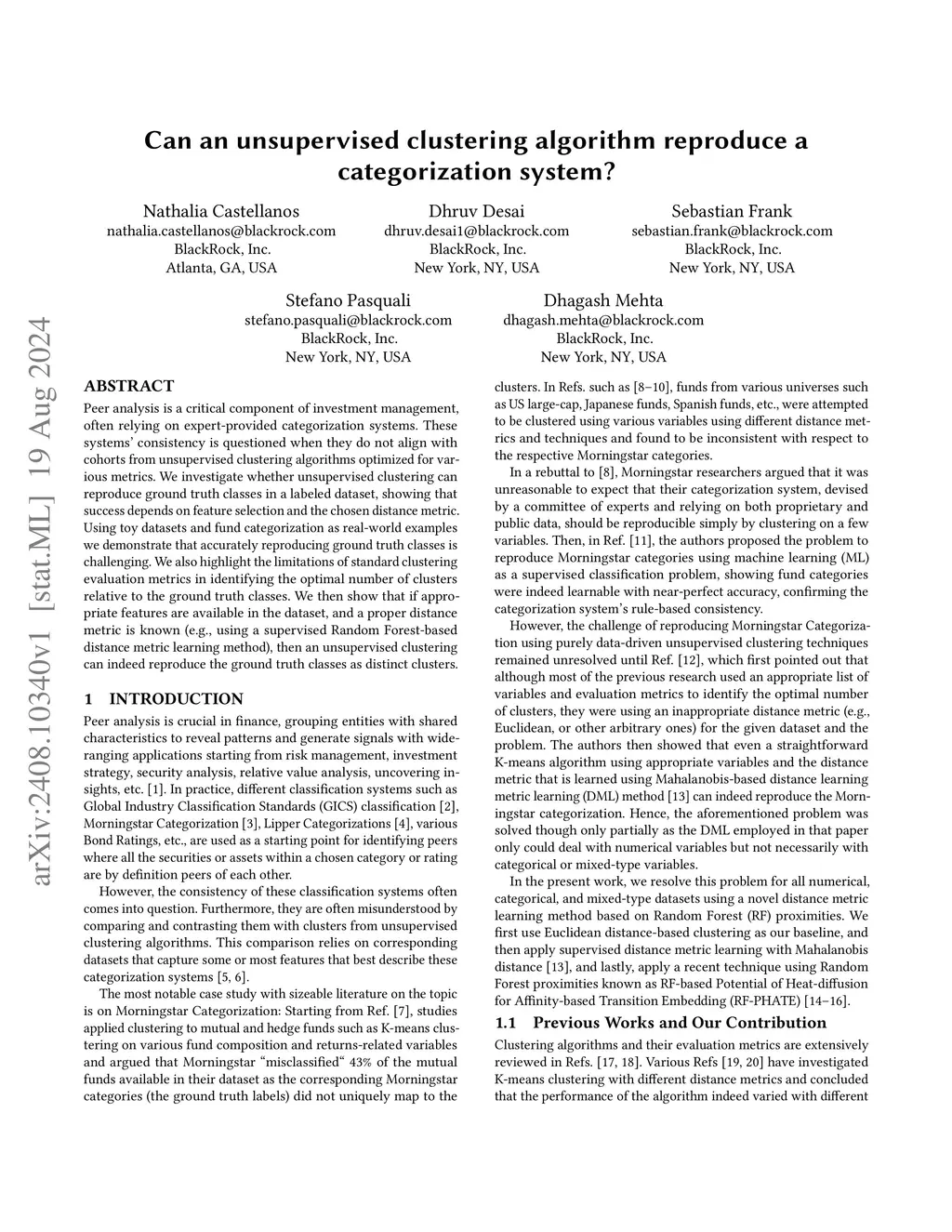 Peer analysis is a critical component of investment management, often relying on expert-provided categorization systems. These systems' consistency is questioned when they do not align with cohorts from unsupervised clustering algorithms optimized for various metrics. We investigate whether unsupervised clustering can reproduce ground truth classes in a labeled dataset, showing that success depends on feature selection and the chosen distance metric. Using toy datasets and fund categorization as real-world examples we demonstrate that accurately reproducing ground truth classes is challenging. We also highlight the limitations of standard clustering evaluation metrics in identifying the optimal number of clusters relative to the ground truth classes. We then show that if appropriate features are available in the dataset, and a proper distance metric is known (e.g., using a supervised Random Forest-based distance metric learning method), then an unsupervised clustering can indeed reproduce the ground truth classes as distinct clusters.