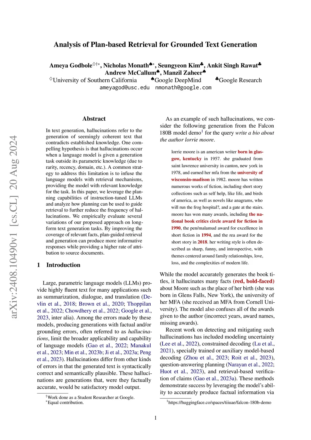 Analysis of Plan-based Retrieval for Grounded Text Generation