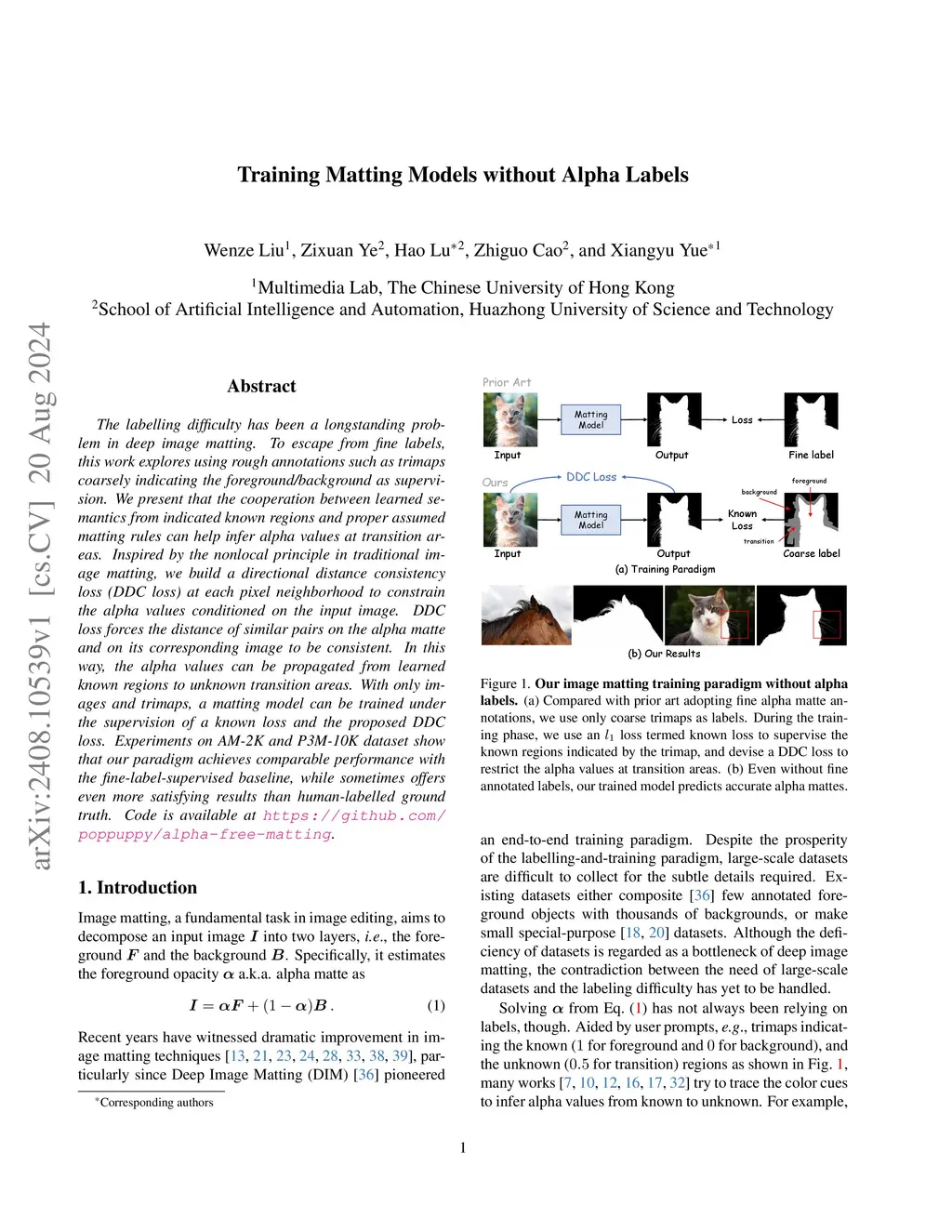 Training Matting Models without Alpha Labels