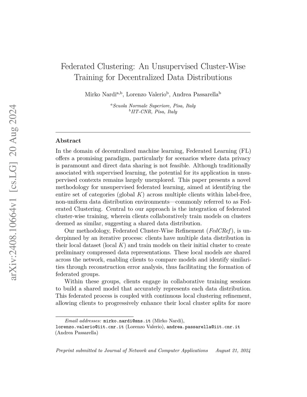Federated Clustering: An Unsupervised Cluster-Wise Training for Decentralized Data Distributions