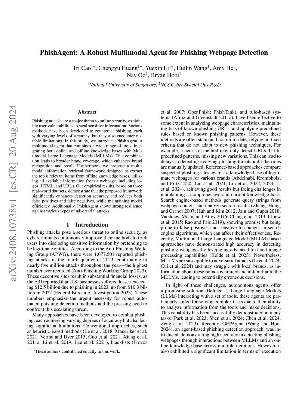 Phishing attacks are a major threat to online security, exploiting user vulnerabilities to steal sensitive information. Various methods have been developed to counteract phishing, each with varying levels of accuracy, but they also face notable limitations. In this study, we introduce PhishAgent, a multimodal agent that combines a wide range of tools, integrating both online and offline knowledge bases with Multimodal Large Language Models (MLLMs). This combination leads to broader brand coverage, which enhances brand recognition and recall. Furthermore, we propose a multimodal information retrieval framework designed to extract the relevant top k items from offline knowledge bases, using available information from a webpage, including logos and HTML. Our empirical results, based on three real-world datasets, demonstrate that the proposed framework significantly enhances detection accuracy and reduces both false positives and false negatives, while maintaining model efficiency. Additionally, PhishAgent shows strong resilience against various types of adversarial attacks.
