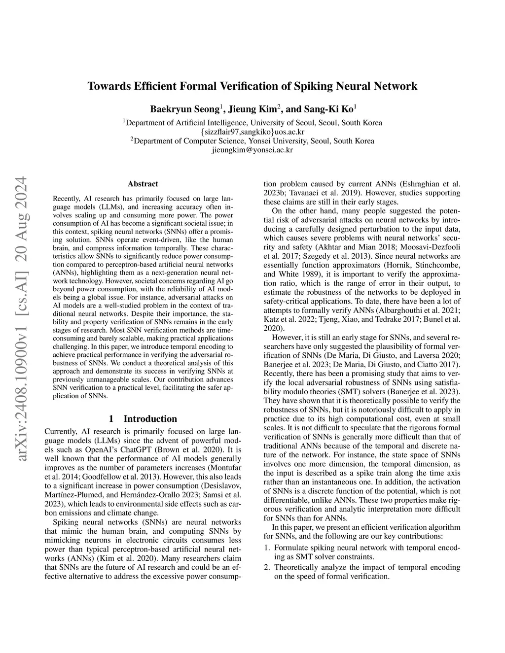 Towards Efficient Formal Verification of Spiking Neural Network