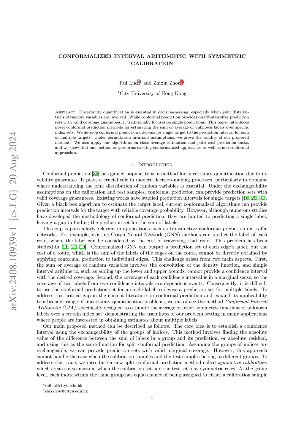 Uncertainty quantification is essential in decision-making, especially when joint distributions of random variables are involved. While conformal prediction provides distribution-free prediction sets with valid coverage guarantees, it traditionally focuses on single predictions. This paper introduces novel conformal prediction methods for estimating the sum or average of unknown labels over specific index sets. We develop conformal prediction intervals for single target to the prediction interval for sum of multiple targets. Under permutation invariant assumptions, we prove the validity of our proposed method. We also apply our algorithms on class average estimation and path cost prediction tasks, and we show that our method outperforms existing conformalized approaches as well as non-conformal approaches.
