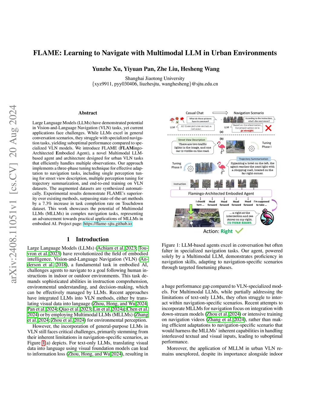 FLAME: Learning to Navigate with Multimodal LLM in Urban Environments