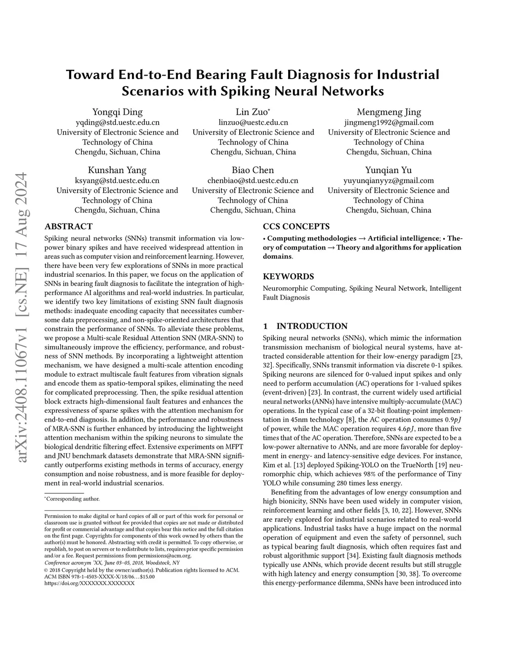 Toward End-to-End Bearing Fault Diagnosis for Industrial Scenarios with Spiking Neural Networks