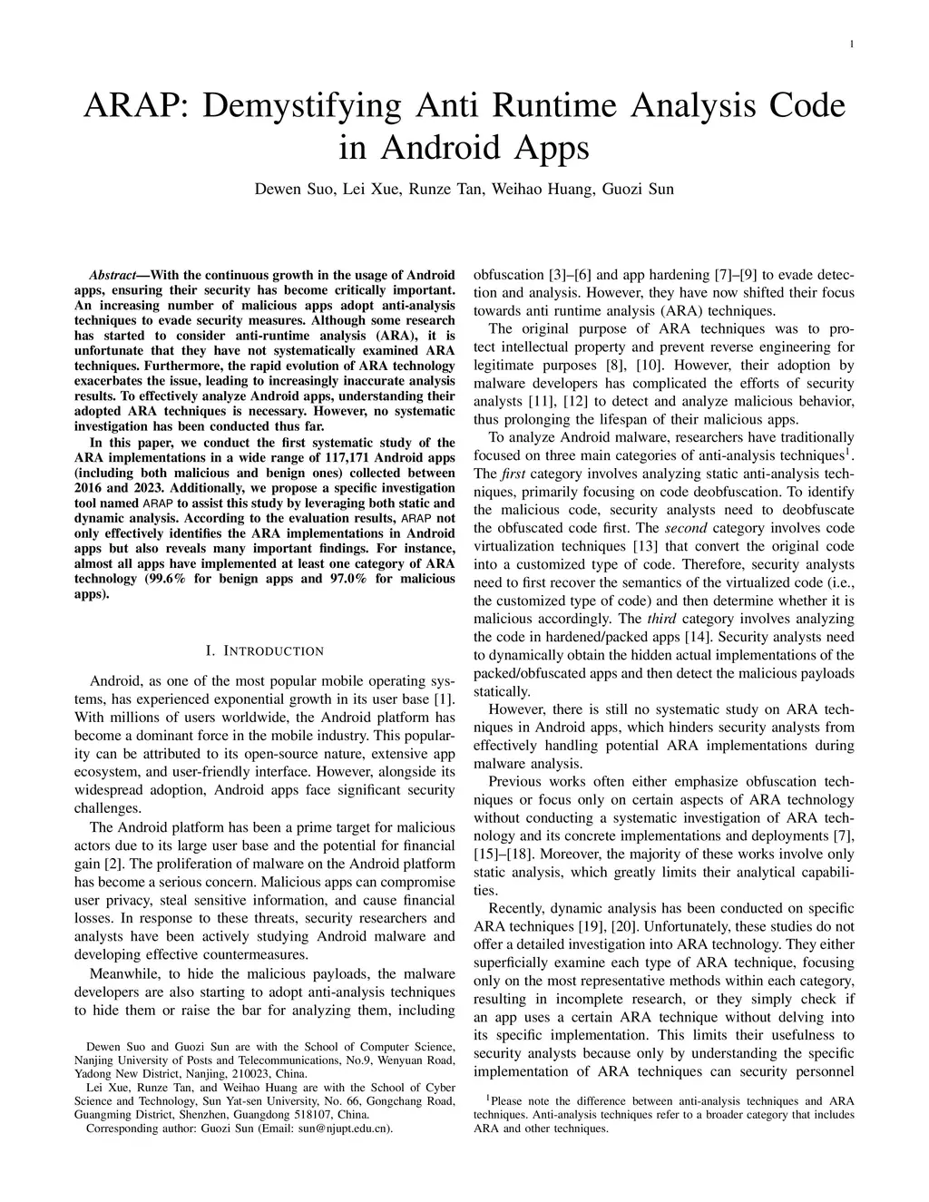 ARAP: Demystifying Anti Runtime Analysis Code in Android Apps