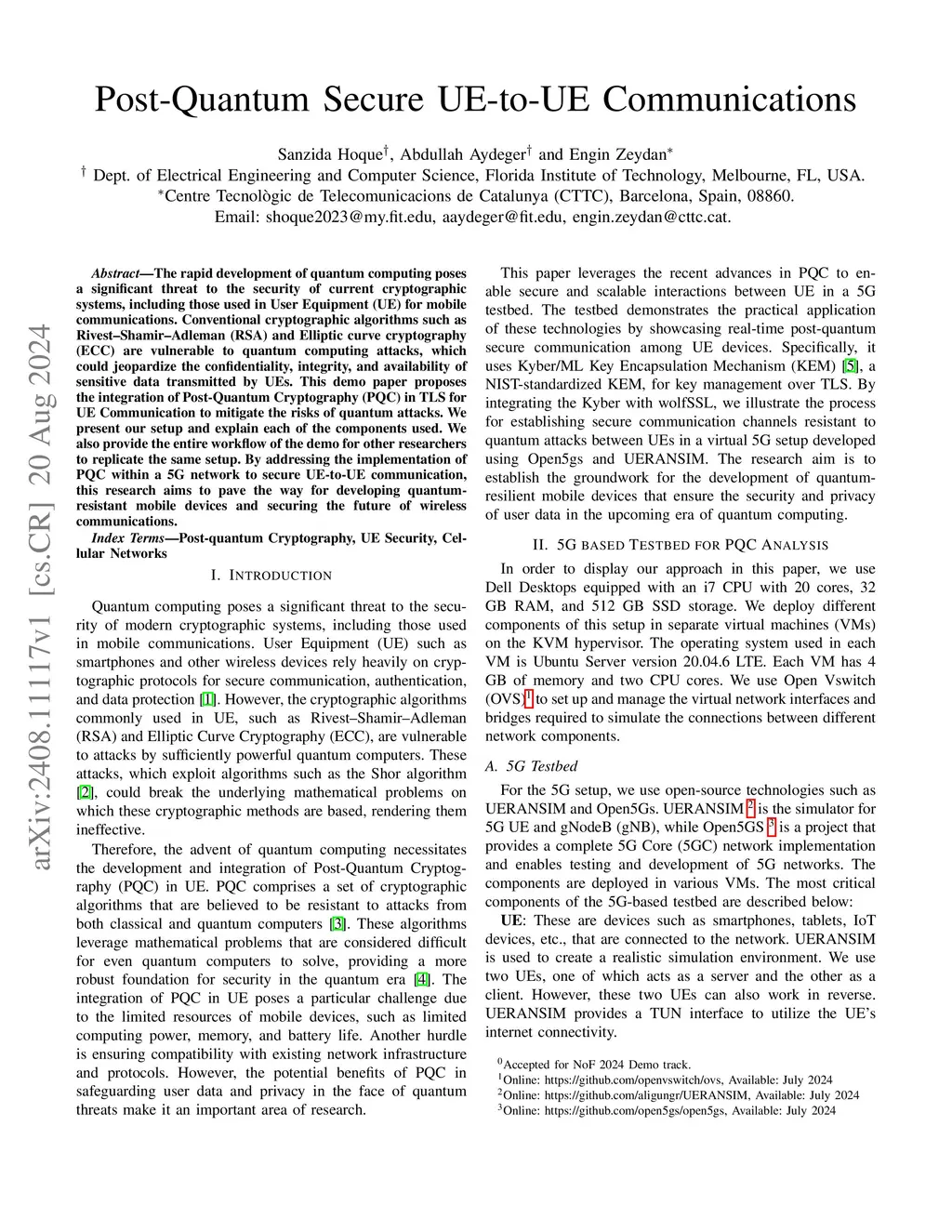 The rapid development of quantum computing poses a significant threat to the security of current cryptographic systems, including those used in User Equipment (UE) for mobile communications. Conventional cryptographic algorithms such as Rivest-Shamir-Adleman (RSA) and Elliptic curve cryptography (ECC) are vulnerable to quantum computing attacks, which could jeopardize the confidentiality, integrity, and availability of sensitive data transmitted by UEs. This demo paper proposes the integration of Post-Quantum Cryptography (PQC) in TLS for UE Communication to mitigate the risks of quantum attacks. We present our setup and explain each of the components used. We also provide the entire workflow of the demo for other researchers to replicate the same setup. By addressing the implementation of PQC within a 5G network to secure UE-to-UE communication, this research aims to pave the way for developing quantum-resistant mobile devices and securing the future of wireless communications.