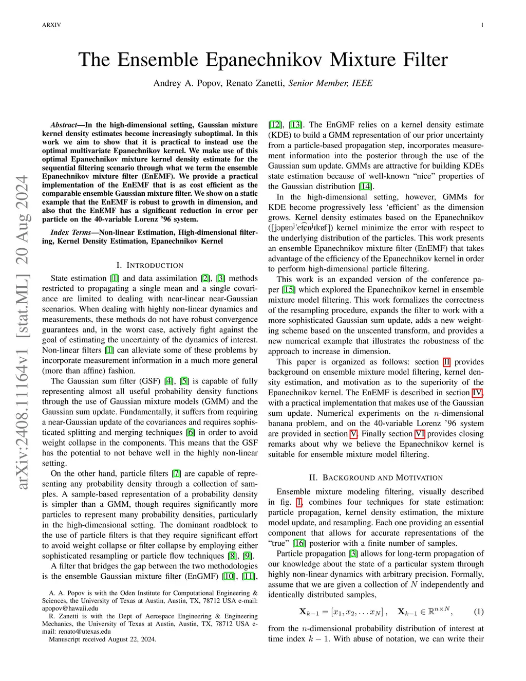 The Ensemble Epanechnikov Mixture Filter