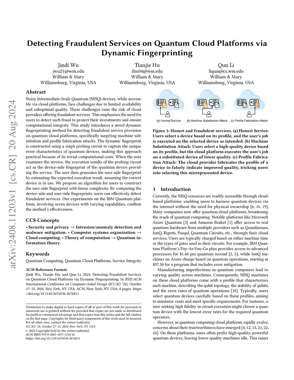 Detecting Fraudulent Services on Quantum Cloud Platforms via Dynamic