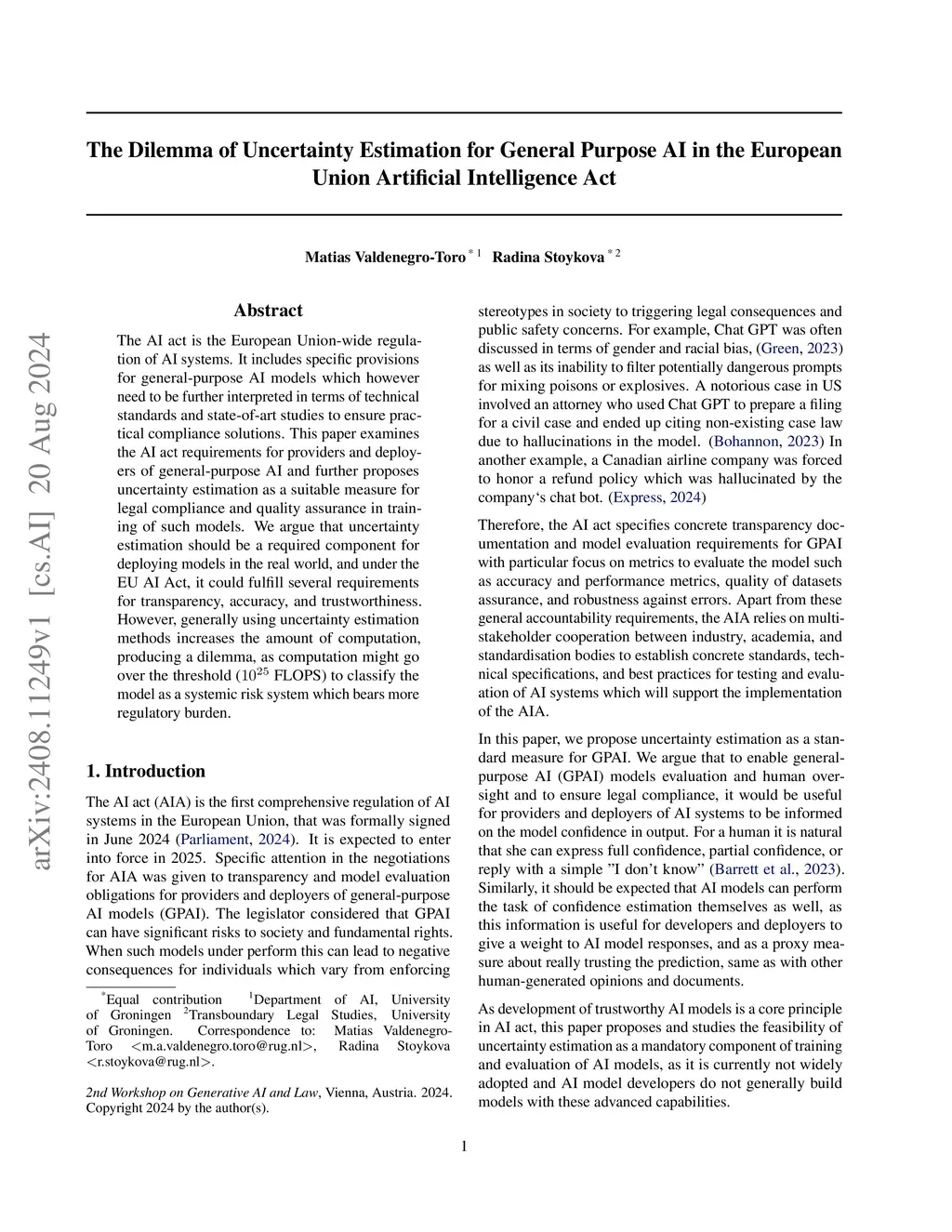The AI act is the European Union-wide regulation of AI systems. It includes specific provisions for general-purpose AI models which however need to be further interpreted in terms of technical standards and state-of-art studies to ensure practical compliance solutions. This paper examines the AI act requirements for providers and deployers of general-purpose AI and further proposes uncertainty estimation as a suitable measure for legal compliance and quality assurance in training of such models. We argue that uncertainty estimation should be a required component for deploying models in the real world, and under the EU AI Act, it could fulfill several requirements for transparency, accuracy, and trustworthiness. However, generally using uncertainty estimation methods increases the amount of computation, producing a dilemma, as computation might go over the threshold ( FLOPS) to classify the model as a systemic risk system which bears more regulatory burden.