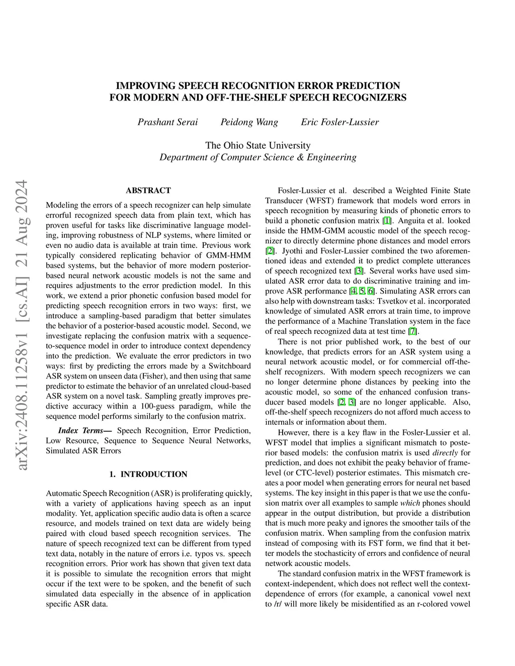 Modeling the errors of a speech recognizer can help simulate errorful recognized speech data from plain text, which has proven useful for tasks like discriminative language modeling, improving robustness of NLP systems, where limited or even no audio data is available at train time. Previous work typically considered replicating behavior of GMM-HMM based systems, but the behavior of more modern posterior-based neural network acoustic models is not the same and requires adjustments to the error prediction model. In this work, we extend a prior phonetic confusion based model for predicting speech recognition errors in two ways: first, we introduce a sampling-based paradigm that better simulates the behavior of a posterior-based acoustic model. Second, we investigate replacing the confusion matrix with a sequence-to-sequence model in order to introduce context dependency into the prediction. We evaluate the error predictors in two ways: first by predicting the errors made by a Switchboard ASR system on unseen data (Fisher), and then using that same predictor to estimate the behavior of an unrelated cloud-based ASR system on a novel task. Sampling greatly improves predictive accuracy within a 100-guess paradigm, while the sequence model performs similarly to the confusion matrix.