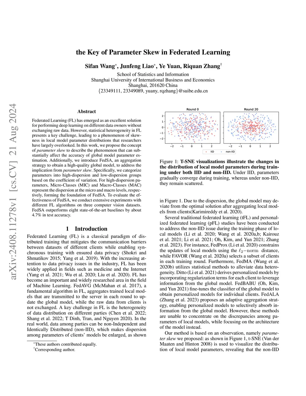 Federated Learning (FL) has emerged as an excellent solution for performing deep learning on different data owners without exchanging raw data. However, statistical heterogeneity in FL presents a key challenge, leading to a phenomenon of skewness in local model parameter distributions that researchers have largely overlooked. In this work, we propose the concept of parameter skew to describe the phenomenon that can substantially affect the accuracy of global model parameter estimation. Additionally, we introduce FedSA, an aggregation strategy to obtain a high-quality global model, to address the implication from parameter skew. Specifically, we categorize parameters into high-dispersion and low-dispersion groups based on the coefficient of variation. For high-dispersion parameters, Micro-Classes (MIC) and Macro-Classes (MAC) represent the dispersion at the micro and macro levels, respectively, forming the foundation of FedSA. To evaluate the effectiveness of FedSA, we conduct extensive experiments with different FL algorithms on three computer vision datasets. FedSA outperforms eight state-of-the-art baselines by about 4.7% in test accuracy.