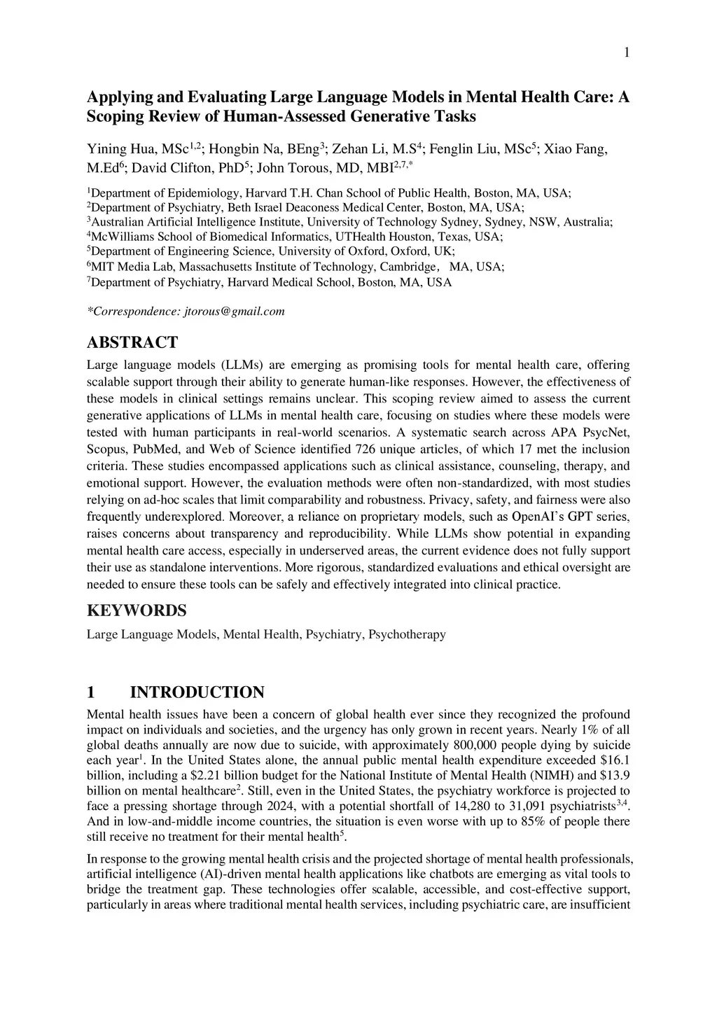 Applying and Evaluating Large Language Models in Mental Health Care: A