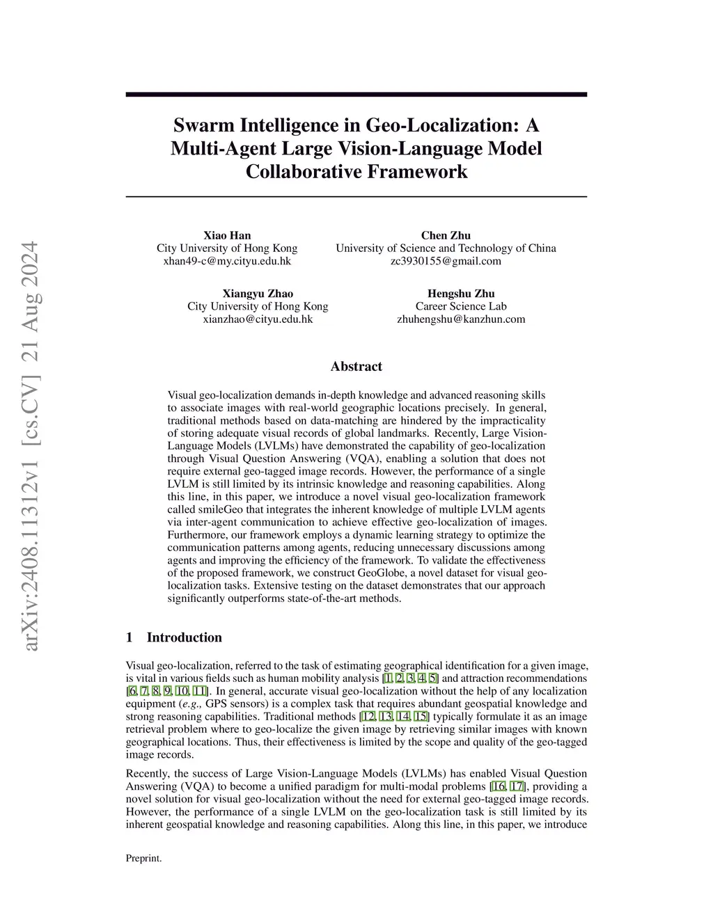 Swarm Intelligence in Geo-Localization: A Multi-Agent Large