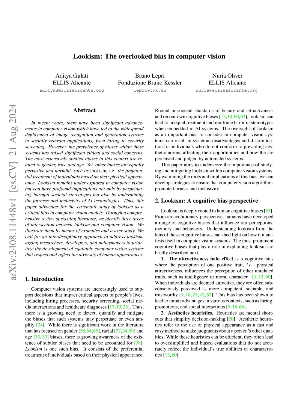 In recent years, there have been significant advancements in computer vision which have led to the widespread deployment of image recognition and generation systems in socially relevant applications, from hiring to security screening. However, the prevalence of biases within these systems has raised significant ethical and social concerns. The most extensively studied biases in this context are related to gender, race and age. Yet, other biases are equally pervasive and harmful, such as lookism, i.e., the preferential treatment of individuals based on their physical appearance. Lookism remains under-explored in computer vision but can have profound implications not only by perpetuating harmful societal stereotypes but also by undermining the fairness and inclusivity of AI technologies. Thus, this paper advocates for the systematic study of lookism as a critical bias in computer vision models. Through a comprehensive review of existing literature, we identify three areas of intersection between lookism and computer vision. We illustrate them by means of examples and a user study. We call for an interdisciplinary approach to address lookism, urging researchers, developers, and policymakers to prioritize the development of equitable computer vision systems that respect and reflect the diversity of human appearances.