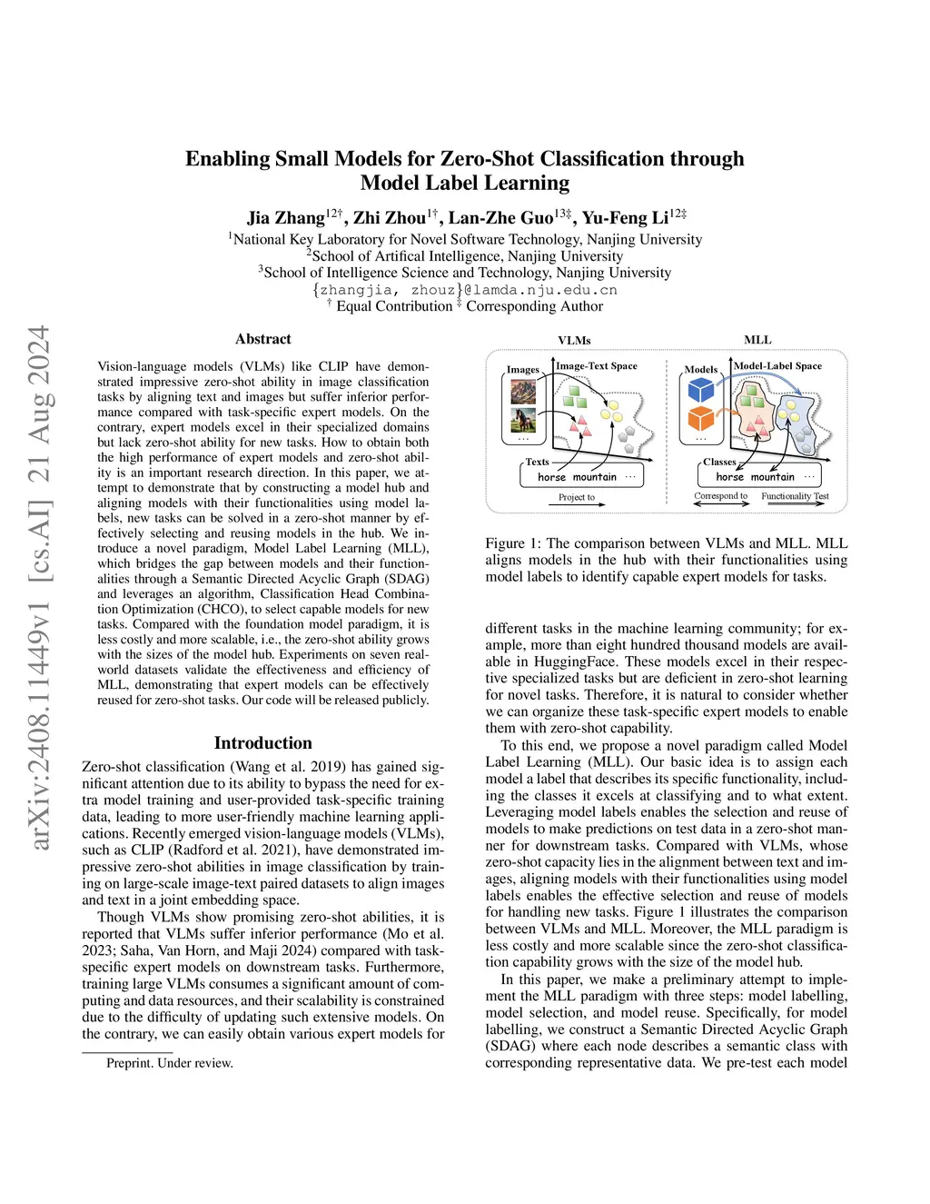 Vision-language models (VLMs) like CLIP have demonstrated impressive zero-shot ability in image classification tasks by aligning text and images but suffer inferior performance compared with task-specific expert models. On the contrary, expert models excel in their specialized domains but lack zero-shot ability for new tasks. How to obtain both the high performance of expert models and zero-shot ability is an important research direction. In this paper, we attempt to demonstrate that by constructing a model hub and aligning models with their functionalities using model labels, new tasks can be solved in a zero-shot manner by effectively selecting and reusing models in the hub. We introduce a novel paradigm, Model Label Learning (MLL), which bridges the gap between models and their functionalities through a Semantic Directed Acyclic Graph (SDAG) and leverages an algorithm, Classification Head Combination Optimization (CHCO), to select capable models for new tasks. Compared with the foundation model paradigm, it is less costly and more scalable, i.e., the zero-shot ability grows with the sizes of the model hub. Experiments on seven real-world datasets validate the effectiveness and efficiency of MLL, demonstrating that expert models can be effectively reused for zero-shot tasks. Our code will be released publicly.
