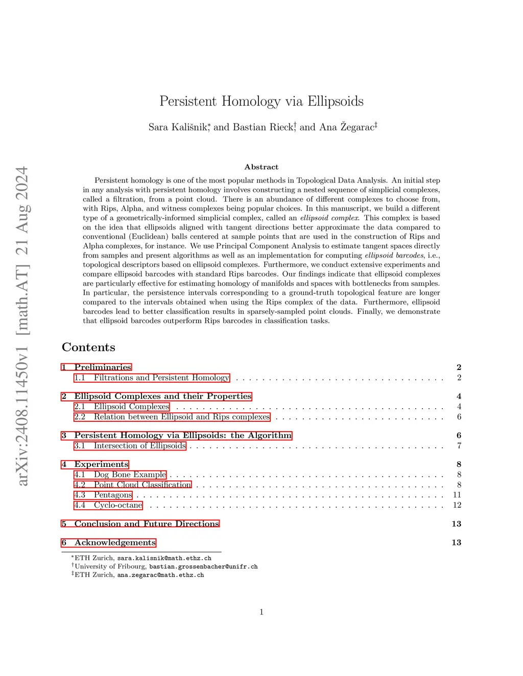 Persistent Homology via Ellipsoids