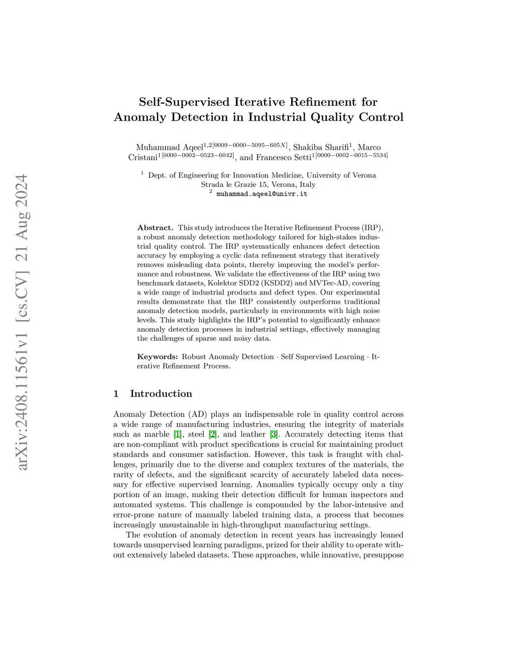 This study introduces the Iterative Refinement Process (IRP), a robust anomaly detection methodology designed for high-stakes industrial quality control. The IRP enhances defect detection accuracy through a cyclic data refinement strategy, iteratively removing misleading data points to improve model performance and robustness. We validate the IRP's effectiveness using two benchmark datasets, Kolektor SDD2 (KSDD2) and MVTec AD, covering a wide range of industrial products and defect types. Our experimental results demonstrate that the IRP consistently outperforms traditional anomaly detection models, particularly in environments with high noise levels. This study highlights the IRP's potential to significantly enhance anomaly detection processes in industrial settings, effectively managing the challenges of sparse and noisy data.