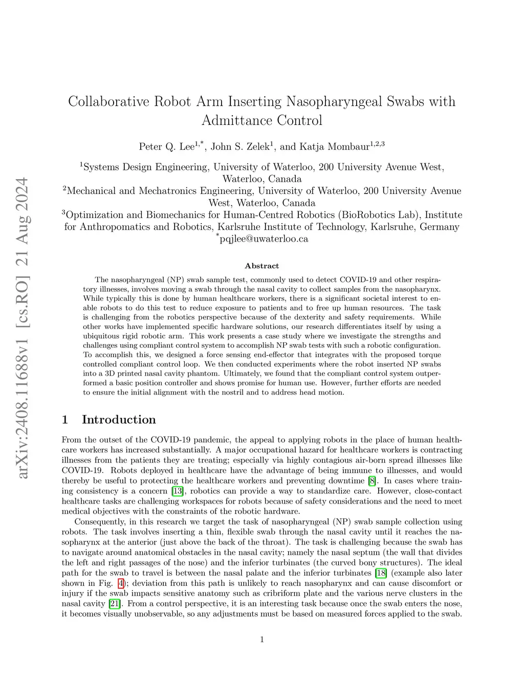 Collaborative Robot Arm Inserting Nasopharyngeal Swabs with Admittance