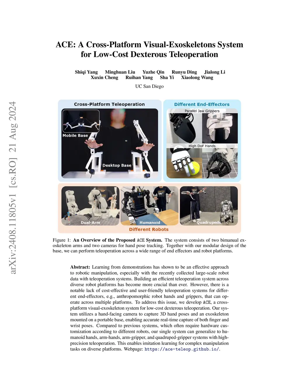 ACE: A Cross-Platform Visual-Exoskeletons System for Low-Cost Dexterous