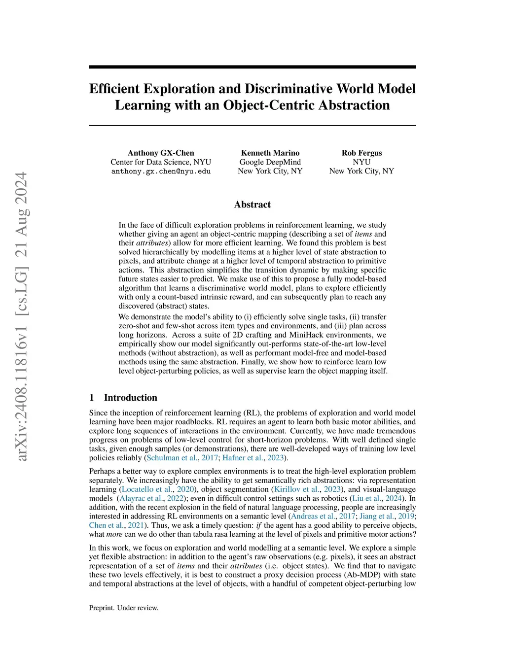Efficient Exploration and Discriminative World Model Learning with an Object-Centric Abstraction