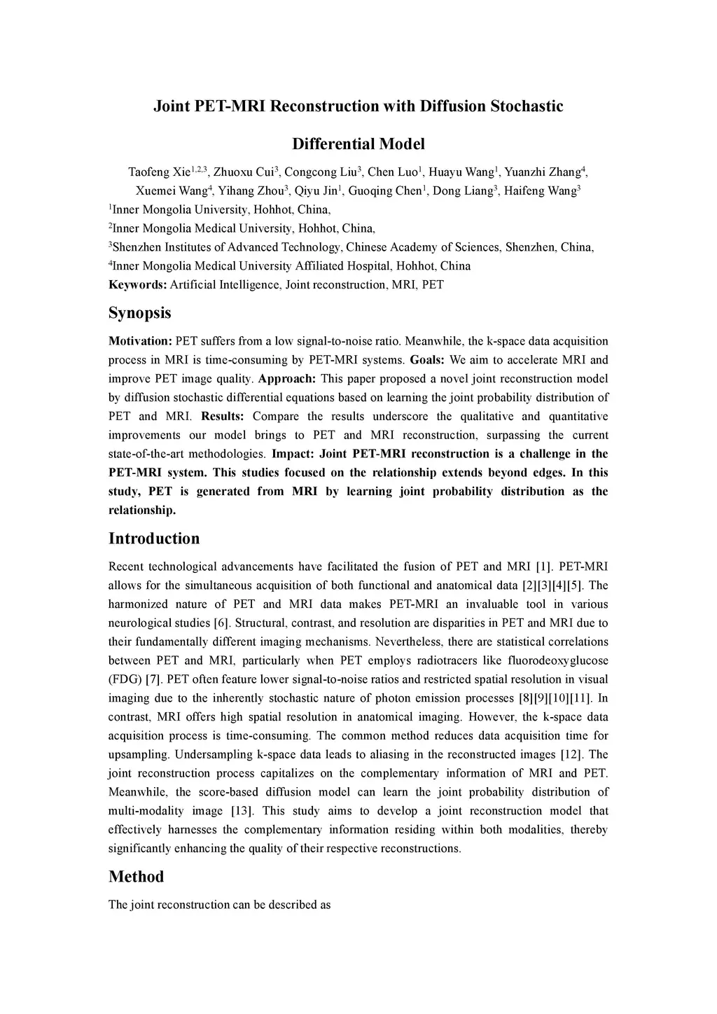 PET suffers from a low signal-to-noise ratio. Meanwhile, the k-space data acquisition process in MRI is time-consuming by PET-MRI systems. We aim to accelerate MRI and improve PET image quality. This paper proposed a novel joint reconstruction model by diffusion stochastic differential equations based on learning the joint probability distribution of PET and MRI. Compare the results underscore the qualitative and quantitative improvements our model brings to PET and MRI reconstruction, surpassing the current state-of-the-art methodologies. Joint PET-MRI reconstruction is a challenge in the PET-MRI system. This studies focused on the relationship extends beyond edges. In this study, PET is generated from MRI by learning joint probability distribution as the relationship.