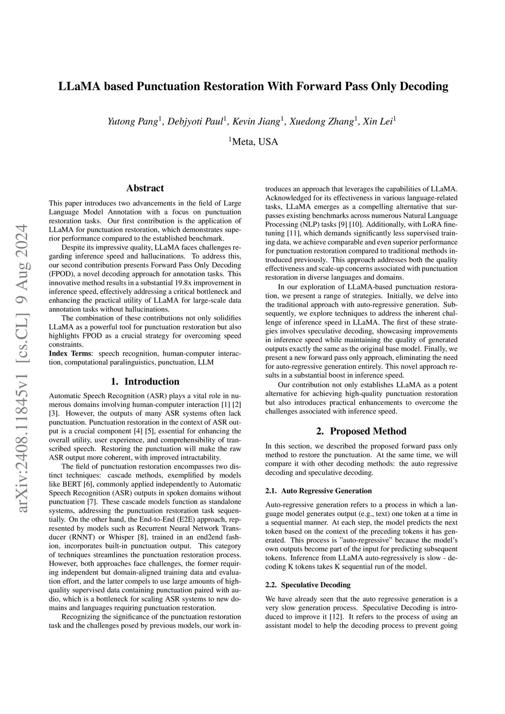 This paper introduces two advancements in the field of Large Language Model Annotation with a focus on punctuation restoration tasks. Our first contribution is the application of LLaMA for punctuation restoration, which demonstrates superior performance compared to the established benchmark. Despite its impressive quality, LLaMA faces challenges regarding inference speed and hallucinations. To address this, our second contribution presents Forward Pass Only Decoding (FPOD), a novel decoding approach for annotation tasks. This innovative method results in a substantial 19.8x improvement in inference speed, effectively addressing a critical bottleneck and enhancing the practical utility of LLaMA for large-scale data annotation tasks without hallucinations. The combination of these contributions not only solidifies LLaMA as a powerful tool for punctuation restoration but also highlights FPOD as a crucial strategy for overcoming speed constraints.