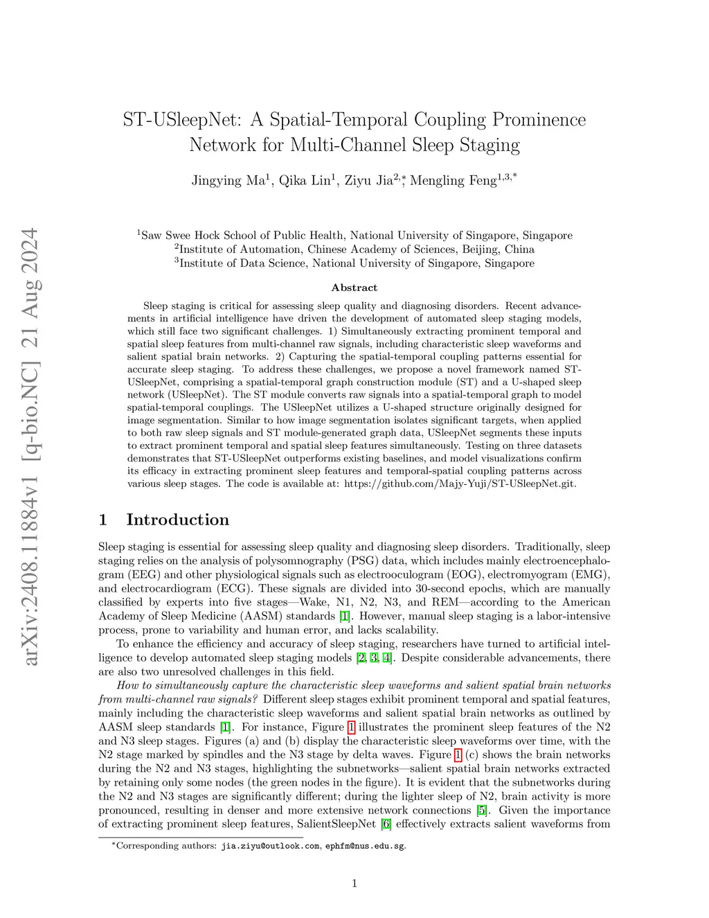 ST-USleepNet: A Spatial-Temporal Coupling Prominence Network for Multi-Channel Sleep Staging