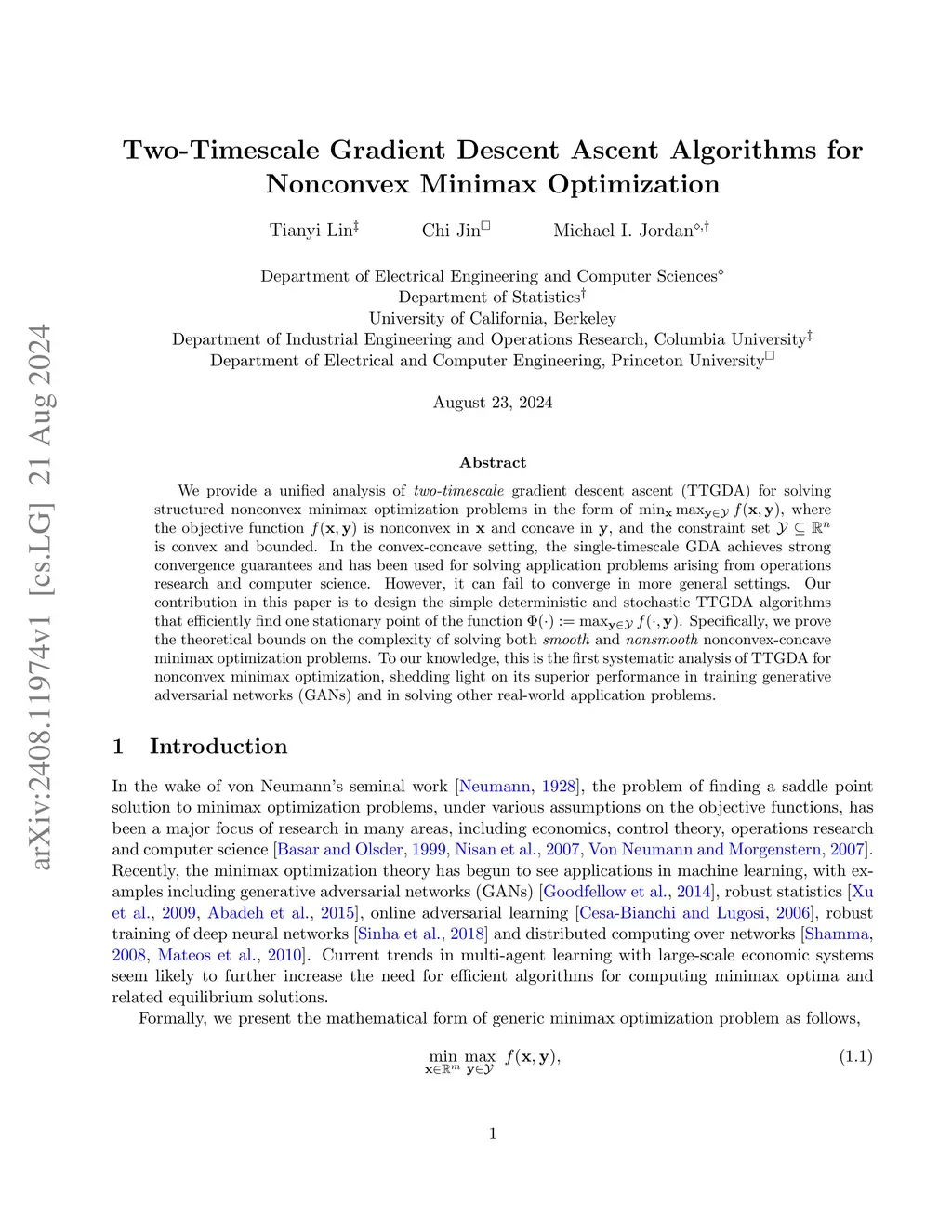 Two-Timescale Gradient Descent Ascent Algorithms for Nonconvex Minimax Optimization