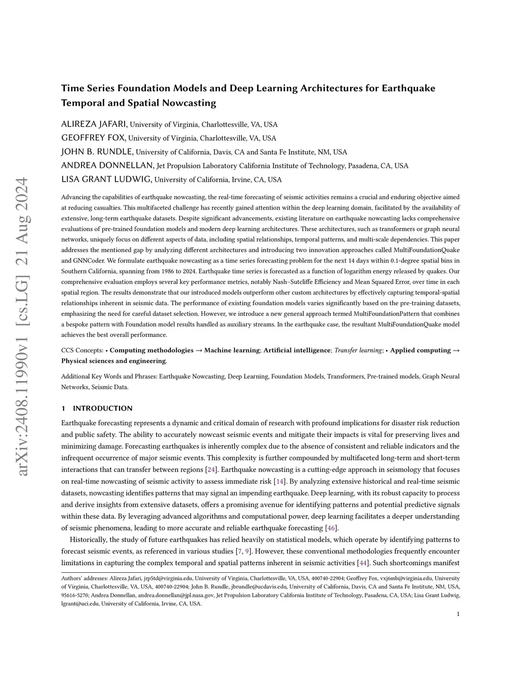 Advancing the capabilities of earthquake nowcasting, the real-time forecasting of seismic activities remains a crucial and enduring objective aimed at reducing casualties. This multifaceted challenge has recently gained attention within the deep learning domain, facilitated by the availability of extensive, long-term earthquake datasets. Despite significant advancements, existing literature on earthquake nowcasting lacks comprehensive evaluations of pre-trained foundation models and modern deep learning architectures. These architectures, such as transformers or graph neural networks, uniquely focus on different aspects of data, including spatial relationships, temporal patterns, and multi-scale dependencies. This paper addresses the mentioned gap by analyzing different architectures and introducing two innovation approaches called MultiFoundationQuake and GNNCoder. We formulate earthquake nowcasting as a time series forecasting problem for the next 14 days within 0.1-degree spatial bins in Southern California, spanning from 1986 to 2024. Earthquake time series is forecasted as a function of logarithm energy released by quakes. Our comprehensive evaluation employs several key performance metrics, notably Nash-Sutcliffe Efficiency and Mean Squared Error, over time in each spatial region. The results demonstrate that our introduced models outperform other custom architectures by effectively capturing temporal-spatial relationships inherent in seismic data. The performance of existing foundation models varies significantly based on the pre-training datasets, emphasizing the need for careful dataset selection. However, we introduce a new general approach termed MultiFoundationPattern that combines a bespoke pattern with foundation model results handled as auxiliary streams. In the earthquake case, the resultant MultiFoundationQuake model achieves the best overall performance.