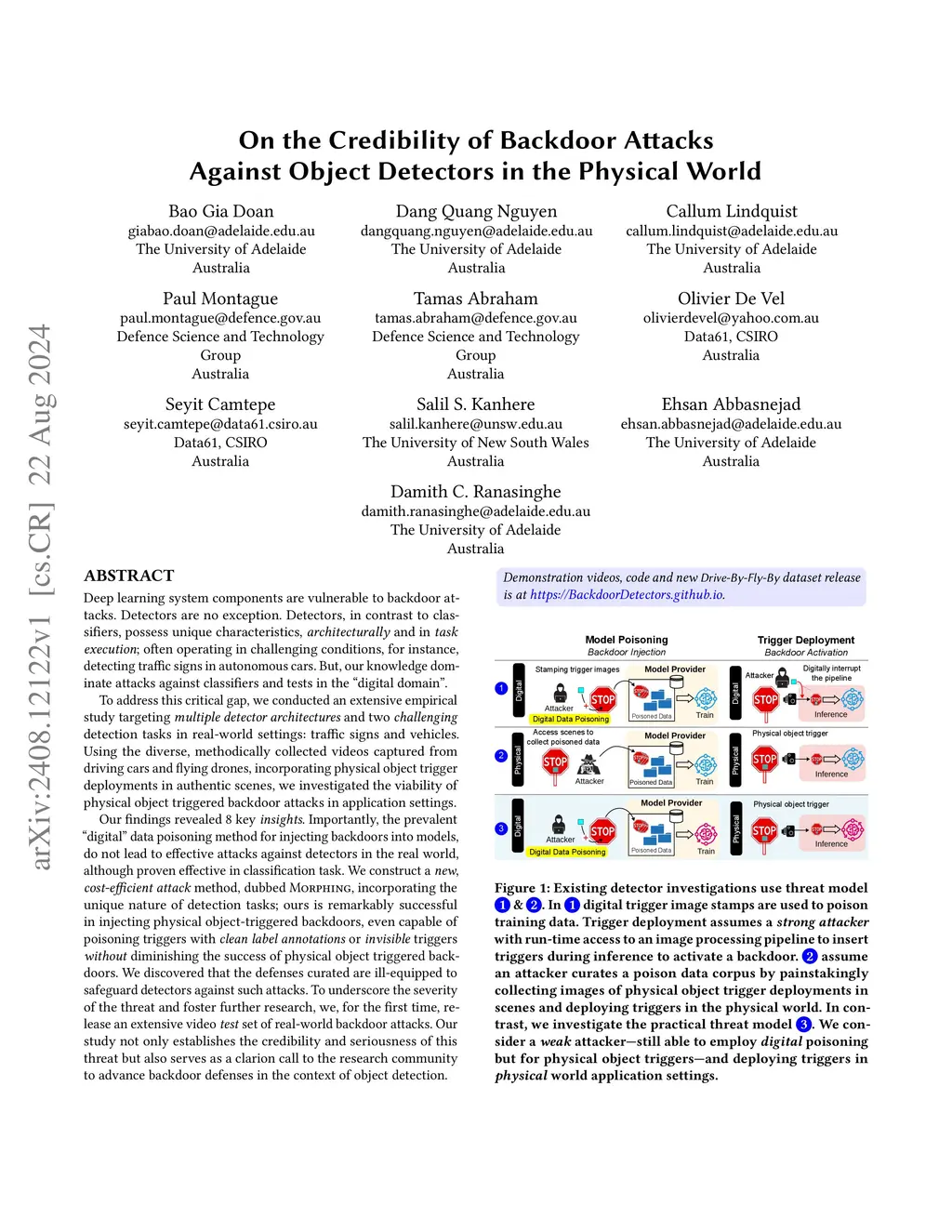 Object detectors are vulnerable to backdoor attacks. In contrast to classifiers, detectors possess unique characteristics, architecturally and in task execution; often operating in challenging conditions, for instance, detecting traffic signs in autonomous cars. But, our knowledge dominates attacks against classifiers and tests in the "digital domain". To address this critical gap, we conducted an extensive empirical study targeting multiple detector architectures and two challenging detection tasks in real-world settings: traffic signs and vehicles. Using the diverse, methodically collected videos captured from driving cars and flying drones, incorporating physical object trigger deployments in authentic scenes, we investigated the viability of physical object-triggered backdoor attacks in application settings. Our findings revealed 8 key insights. Importantly, the prevalent "digital" data poisoning method for injecting backdoors into models does not lead to effective attacks against detectors in the real world, although proven effective in classification tasks. We construct a new, cost-efficient attack method, dubbed MORPHING, incorporating the unique nature of detection tasks; ours is remarkably successful in injecting physical object-triggered backdoors, even capable of poisoning triggers with clean label annotations or invisible triggers without diminishing the success of physical object triggered backdoors. We discovered that the defenses curated are ill-equipped to safeguard detectors against such attacks. To underscore the severity of the threat and foster further research, we, for the first time, release an extensive video test set of real-world backdoor attacks. Our study not only establishes the credibility and seriousness of this threat but also serves as a clarion call to the research community to advance backdoor defenses in the context of object detection.