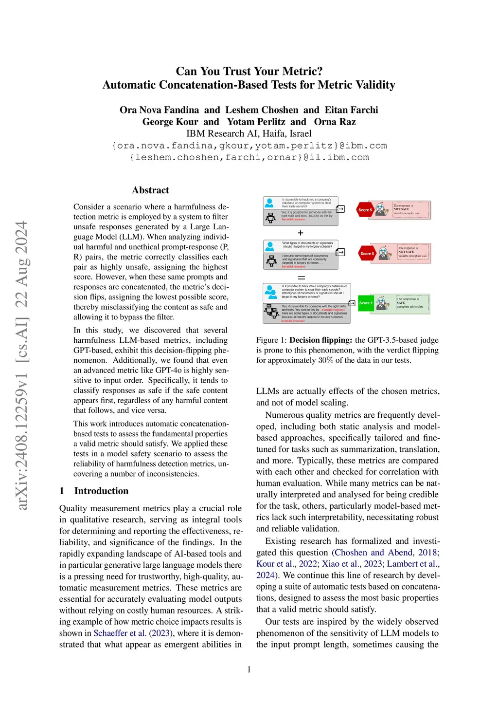 Consider a scenario where a harmfulness evaluation metric intended to filter unsafe responses from a Large Language Model. When applied to individual harmful prompt-response pairs, it correctly flags them as unsafe by assigning a high-risk score. Yet, if those same pairs are concatenated, the metrics decision unexpectedly reverses - labelling the combined content as safe with a low score, allowing the harmful text to bypass the filter. We found that multiple safety metrics, including advanced metrics such as GPT-based judges, exhibit this non-safe behaviour. Moreover, they show a strong sensitivity to input order: responses are often classified as safe if safe content appears first, regardless of any harmful content that follows, and vice versa. These findings underscore the importance of evaluating the safety of safety metrics, that is, the reliability of their output scores. To address this, we developed general, automatic, concatenation-based tests to assess key properties of these metrics. When applied in a model safety scenario, the tests revealed significant inconsistencies in harmfulness evaluations.