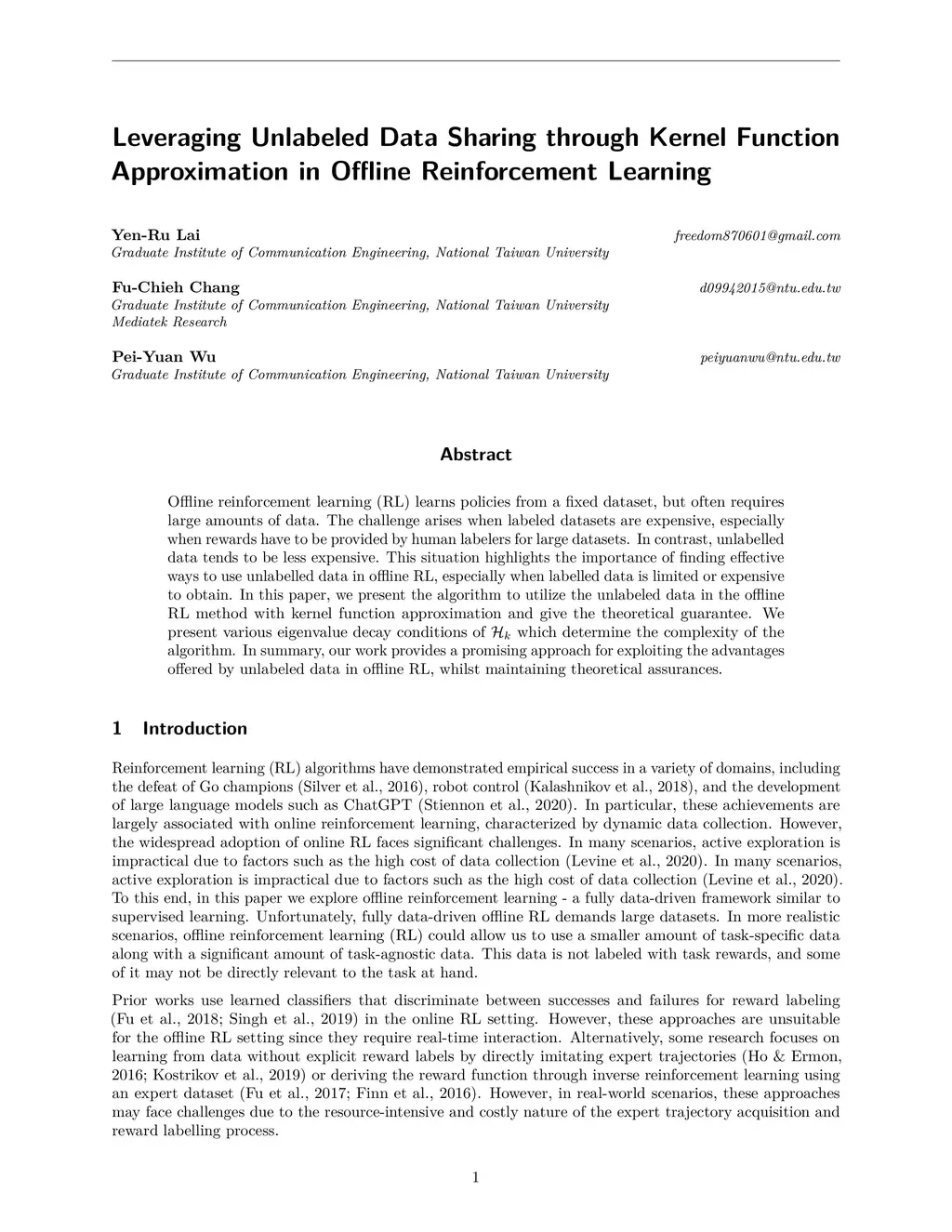 Leveraging Unlabeled Data Sharing through Kernel Function Approximation in Offline Reinforcement Learning