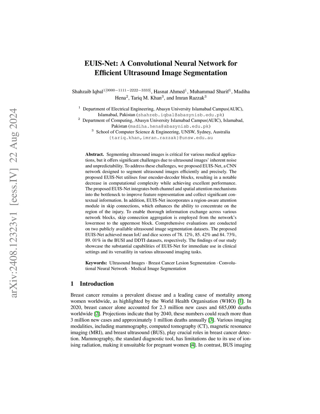 EUIS-Net: A Convolutional Neural Network for Efficient Ultrasound Image